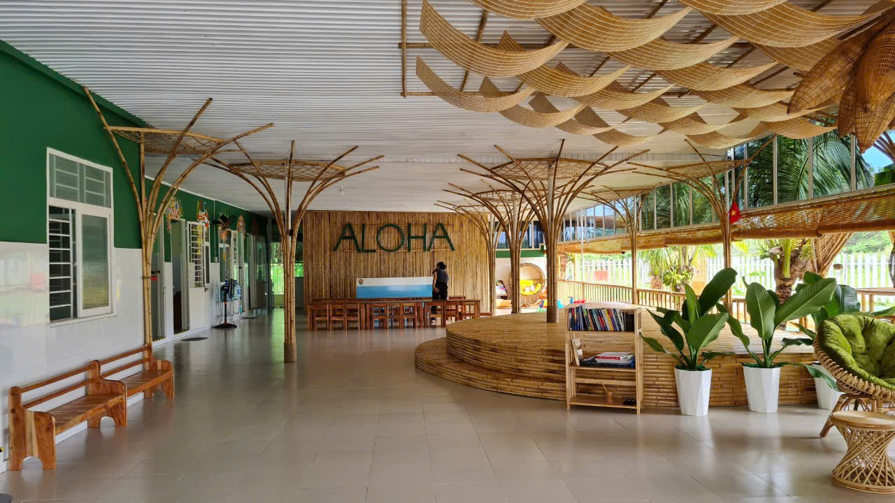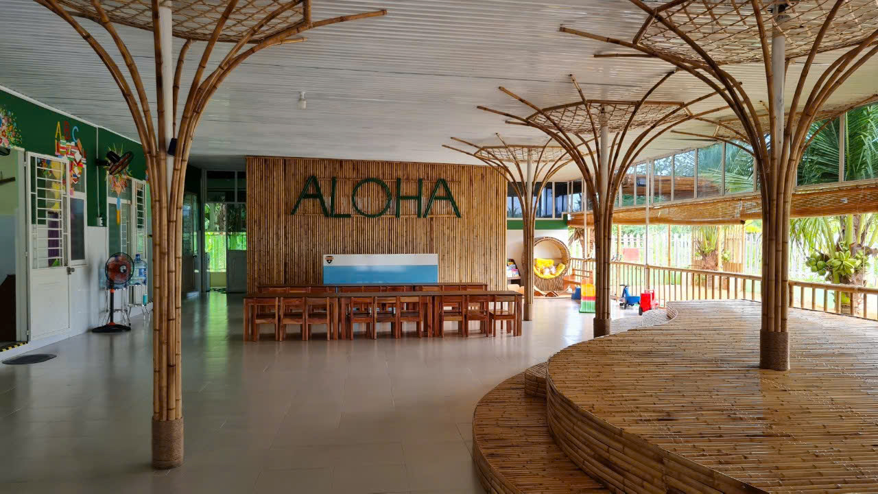Thực hiện năm 2022, Mầm non Aloha tại Phan Rang được ToAM cải tạo với tinh thần đem đến cho trẻ không gian thiên nhiên và lành mạnh, nuôi dưỡng các giác quan non yếu trong tình yêu thương của tự nhiên bằng cách sử dụng vật liệu thuận tự nhiên (tre, gỗ, thừng..) trong các modul vui chơi, khu ăn uống và sinh hoạt ngoài trời.