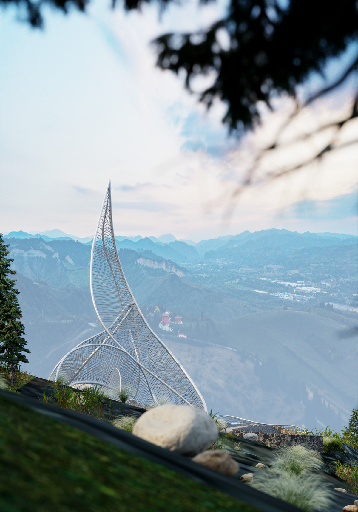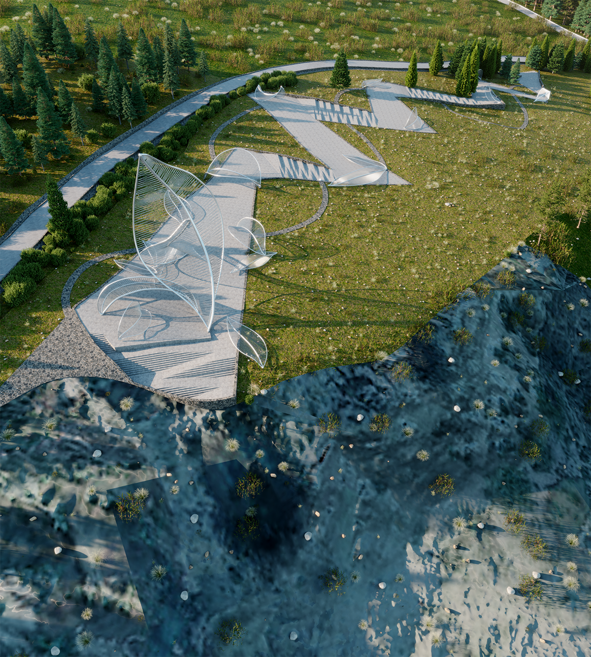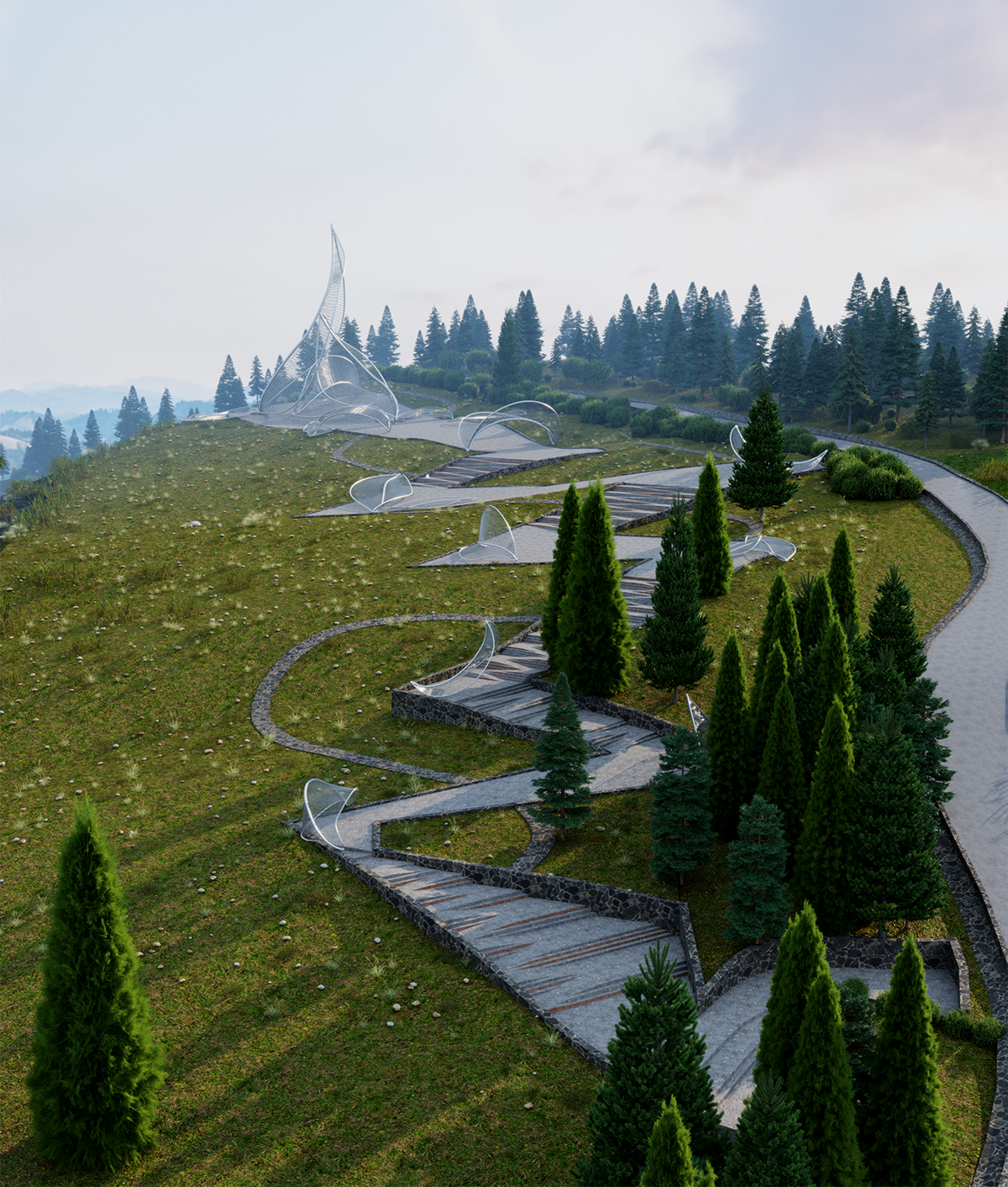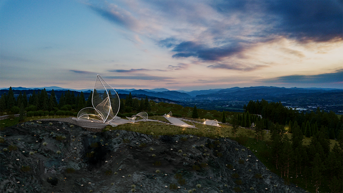 Suy nghĩ một cách khả thi về kết cấu, hình khối của những “chiếc lá” được cấu tạo đơn giản bằng hệ khung thép chịu lực. Bên trong, “chiếc lá” được đan bằng những sợi dây cáp. Có 3 hình dáng của “chiếc lá” được thiết kế với 3 tỷ lệ chiều cao được áp dụng là 5m – 10m – 15m.